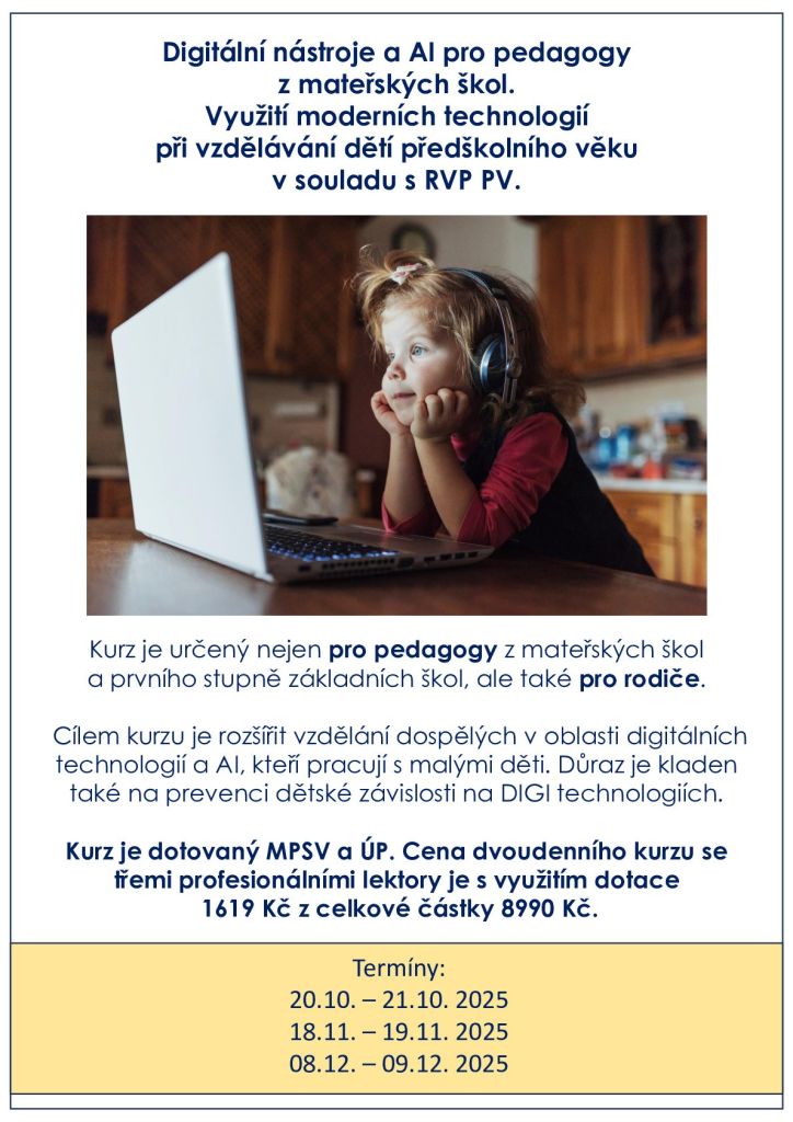 Digitální nástroje a AI pro pedagogy z mateřských škol a rodiče