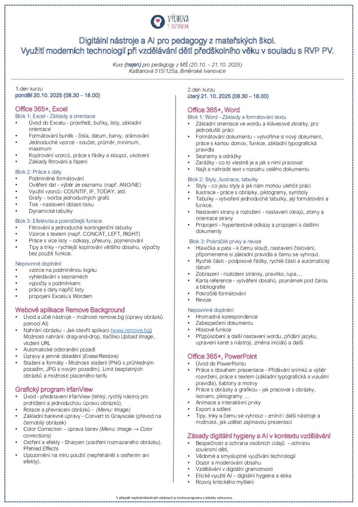 Účastníci získají praktické materiály i certifikát, který lze uplatnit v současné i budoucí profesní dráze.
